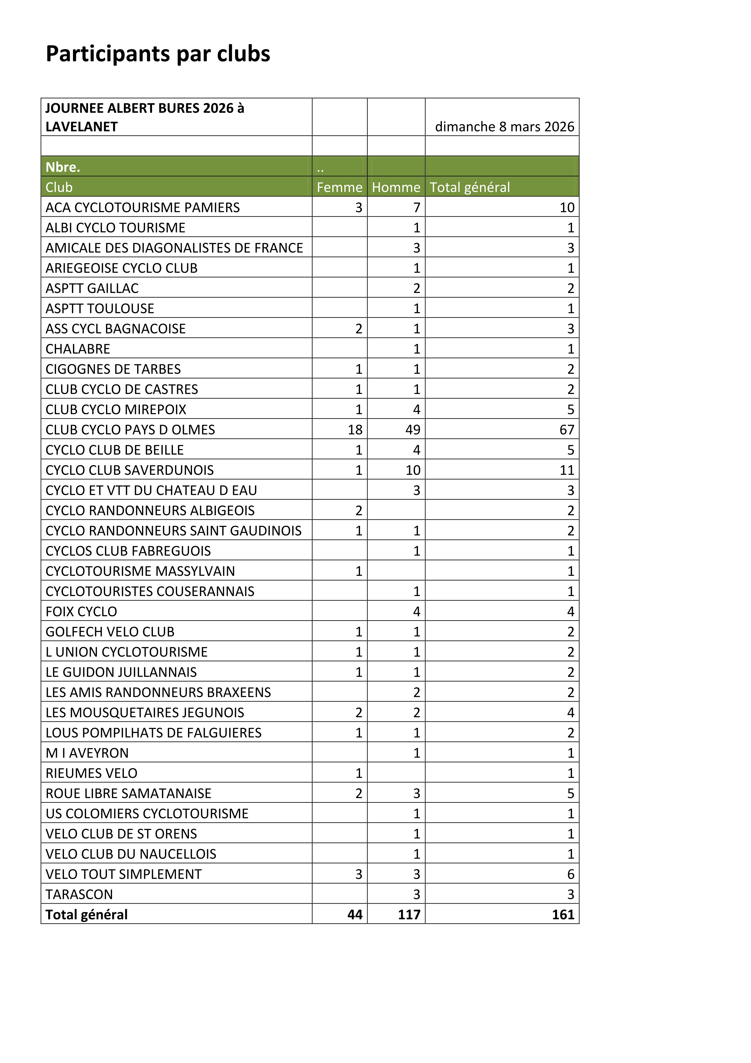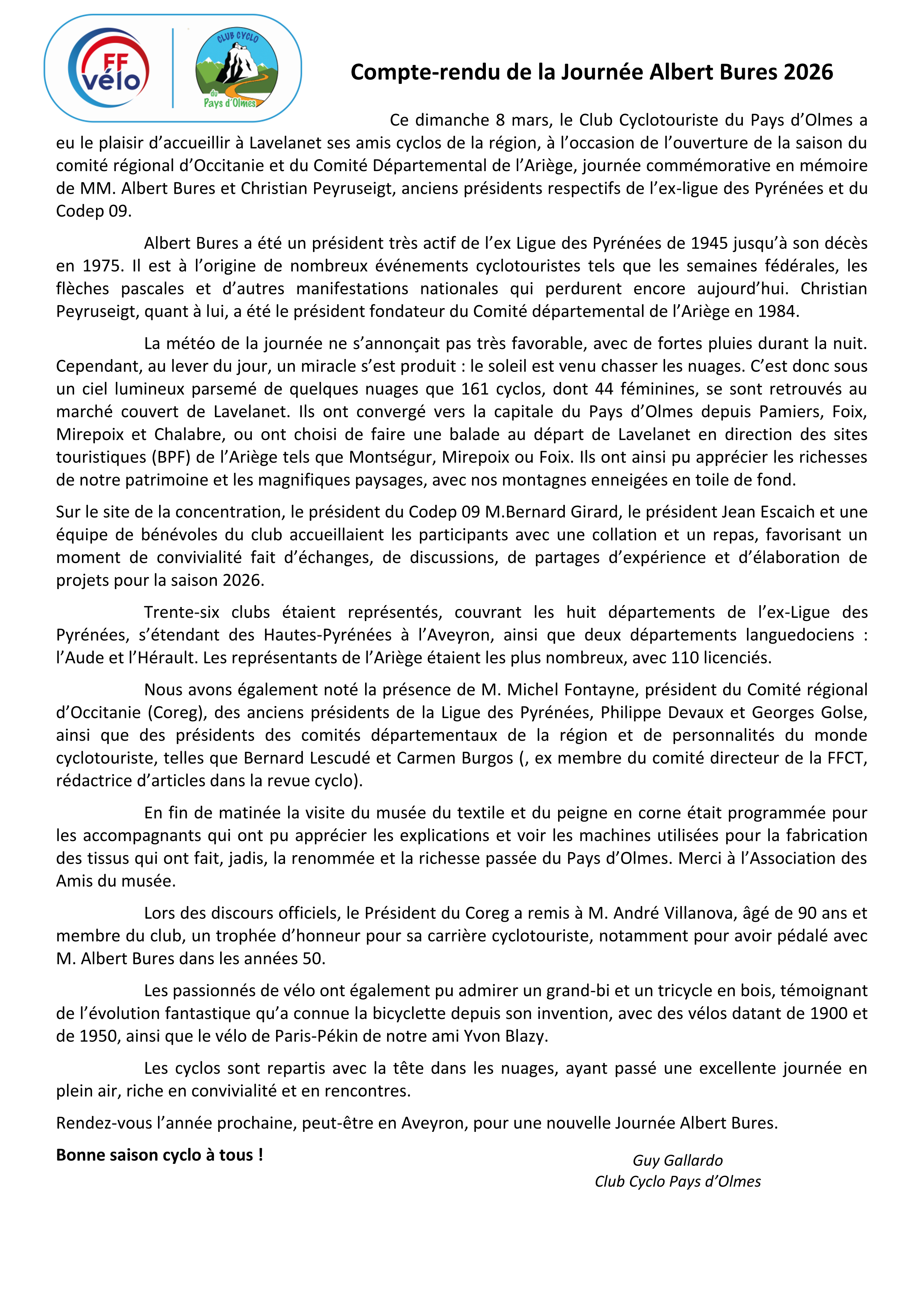Le Club Cyclo du Pays d’Olmes et le CODEP09 vous présentent le compte-rendu de la Journée Albert Bures 2026 qui s’est déroulée ce dimanche 8 mars à Lavelanet.