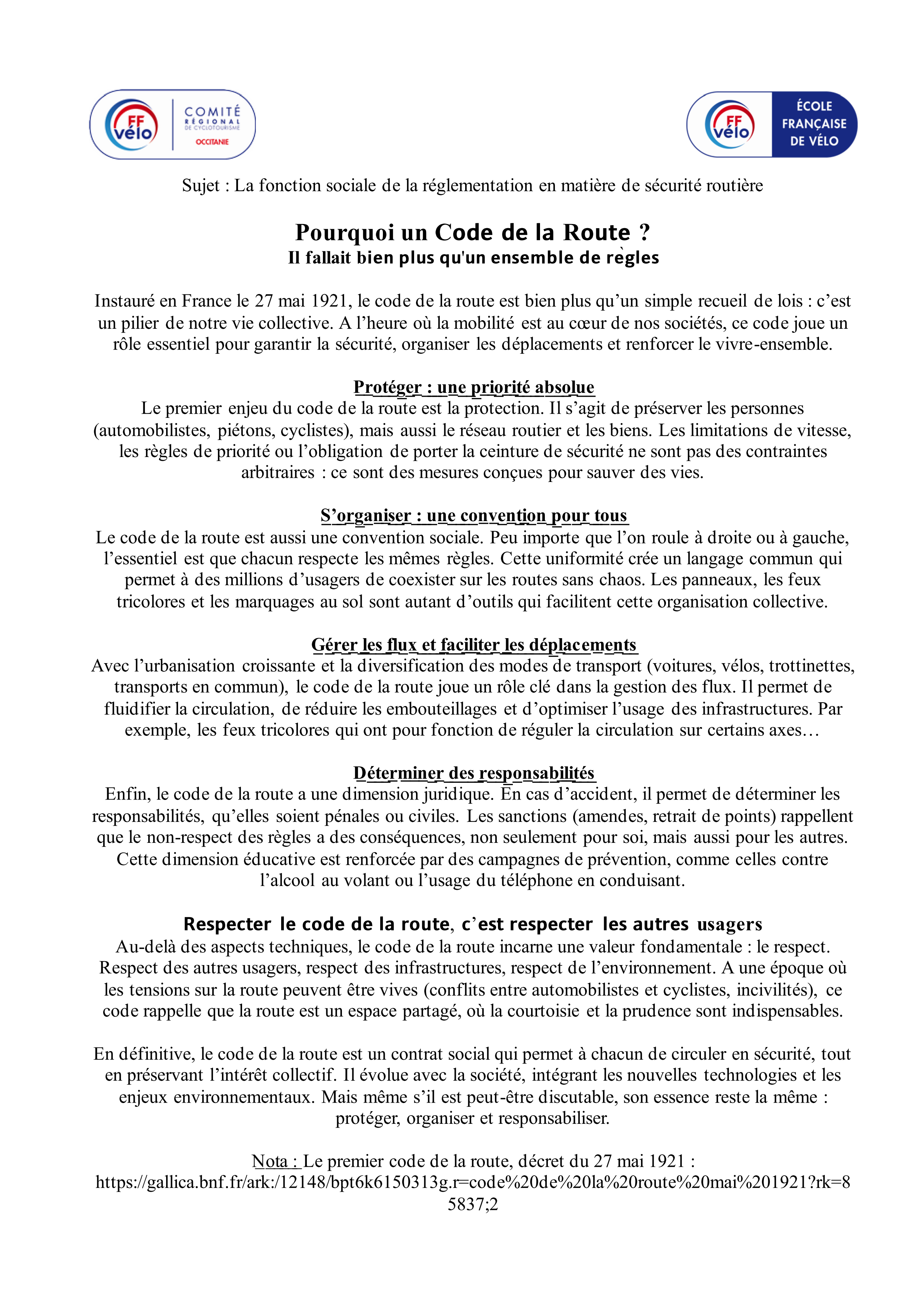 - Le Code du Cycliste